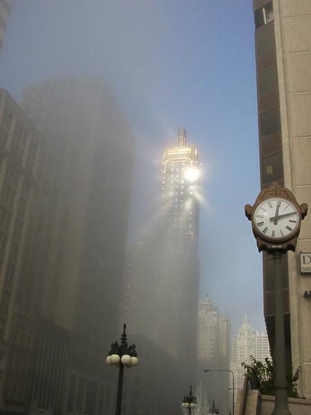 | A sniadanie jest dzis z widokami. Tam z tylu po prawej Sears Tower (jeszcze ja zdobedziemy :-) |