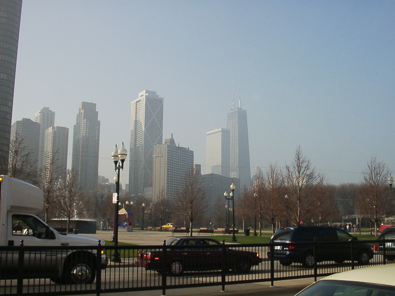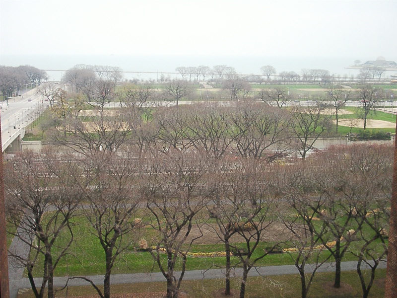 | Po sniadaniu wybralismy sie taksowka do polskiej dzielnicy w Chicago, kupilismy troche polskich slodyczy (niestety nie bylo Kasztanek, ktore lubi Wrzos) i polskie ksiazki. A to zdjecie to widok z okien naszego hotelu na park Granta. Jak sie dobrze przypatrzycie, to tam z tylu jest jezioro Michigan |