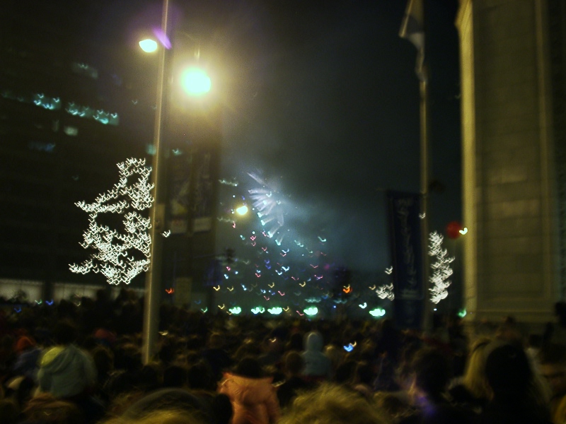 | Niestety jest troche za ciemno na Mirkowy aparat, wiec zamiast fajerwerkow widzac dziwne swiatelka |