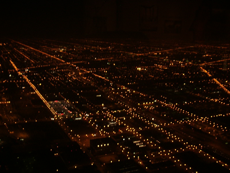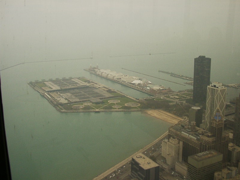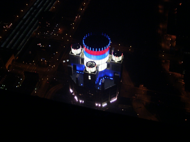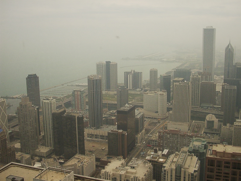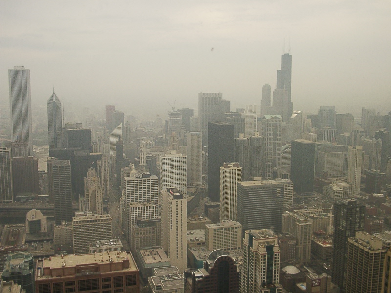 | Bylismy troche zmartwieni, czy cokolwiek bedzie widac (bo czesto na 95 pietrze sie po prostu siedzi w chmurach), nie bylo rewelacyjnie, ale cos tam mozna bylo zobaczyc. |
