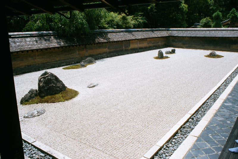 | Najslynniejszy ogrodek skalny Zen w Kyoto (swiatynia Ryoan-ji) The most famous Zen gardens in all the world are at the Ryoan-ji Temple. They say the longer you stare at the scene, the more it will change for you. |