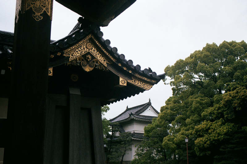 | Jestesmy juz w srodku palacu. Tak wyglada brama wschodnio-poludniowa (pewnie juz doszliscie do wniosku, ze mi sie podobaja japonskie bramy) Here is the a view of a gate from the inside of the palace. |