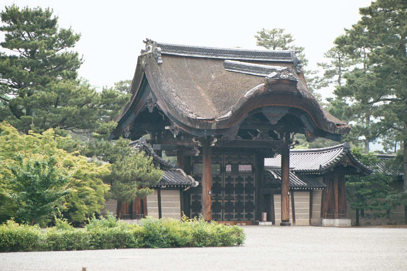 | Palac Ninomaru w srodku zamku Nijo-jo. Siedziba szoguna, kiedy przyjezdzal odwiedzac cesarza Entrance to the Nijo-jo Castle complex with Ninomaru Palace in view. The palace is outfitted with Nightingale floors which sing when you walk on them. |