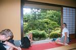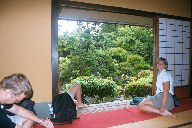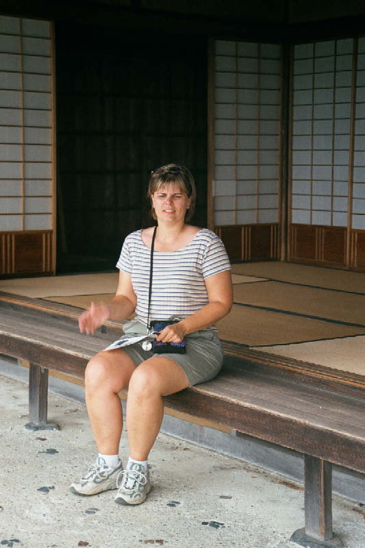 | Wrzos na cesarskim miejscu (tyle, ze nie dostala herbaty) Me sitting on the edge of the tea house that overlooks the gardens. |