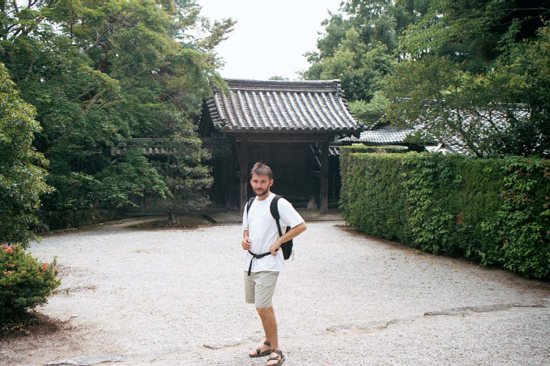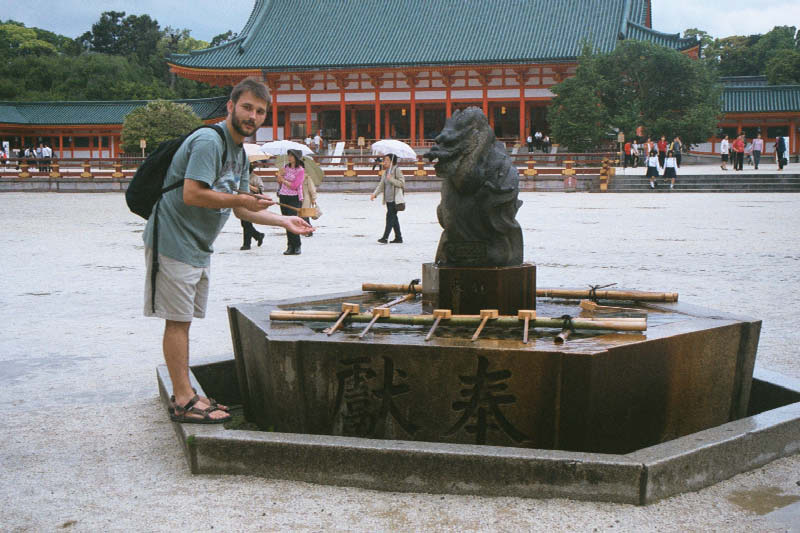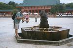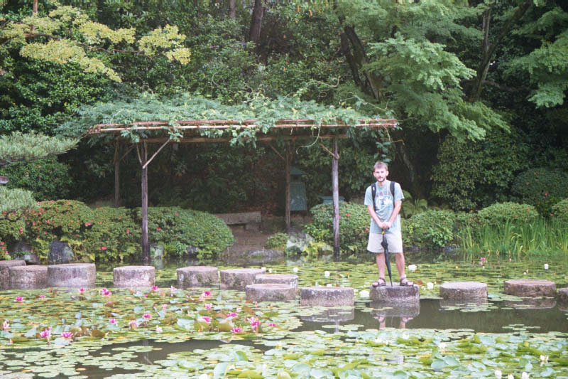 | No wlasnie, ogrody sa naprawde warte odwiedzenia Greg on a stepping stone - again in the gardens at the Heian Shrine. |