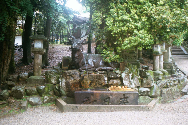 | A to pomnik opiekuna - jelenia. Wszystkie prawie swiatynie w Nara sa na terenie jeleniego/sarniego parku i ponad 3000 zywych rozbestwionych paskudztw wloczy Ci sie pod nosem Since most of Nara is in fact a Deer Park, the deer fountain was fitting. |
