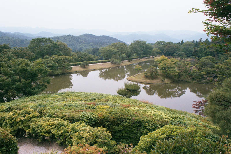 | Na czubku Shuganquin cysorz mial sobie herbaciarnie i taki oto widok The gardens at Shugaku-in make use of "borrowed" scenery, as shown in this example with the mountains in the background. |