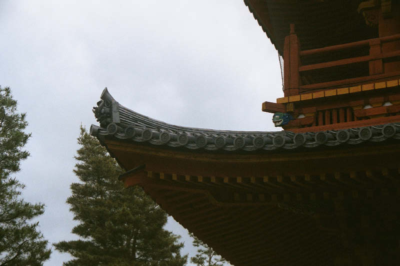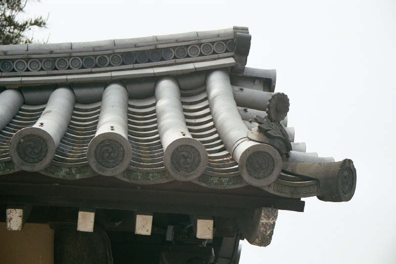 | A na tych dachowkach widac cesarskie chryzantemy The tiles at the edge of the roof are imprinted with a design signifying the family, similar to a crest. This palace had a chrysanthemum on the tiles. |