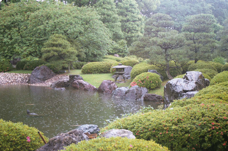 | Jak zwykla pada. Nie padalo tylko w pierwszy dzien naszego pobytu i ostatni And the gardens... Japan is filled with beautiful gardens. This is a typical strolling garden, where every step as you walk around unveils additional beauty. |