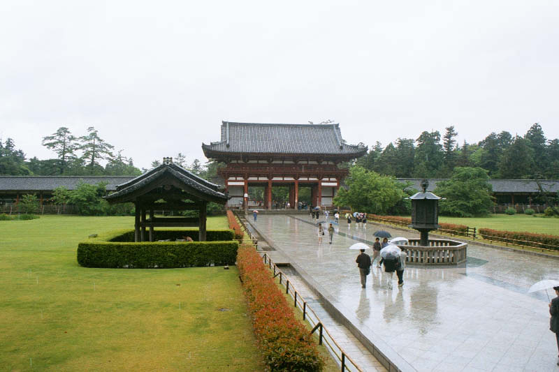 | Obrot o 180 stopni - to wlasnie dziedziniec Looking backwards at the gate to Todai-ji from the steps of the temple. The actual temple building is called Daibutsu-den Hall. |