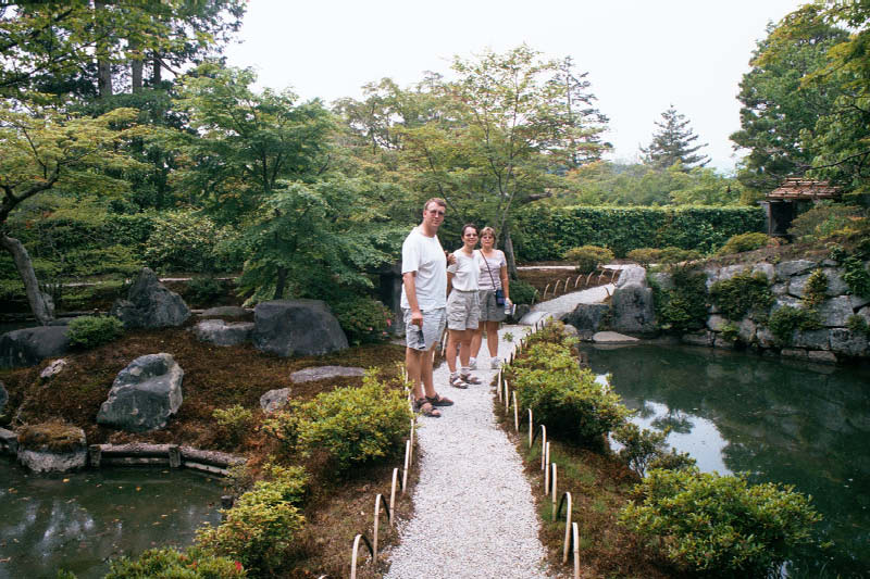 | Trzy czwarte skladu wyprawy szczerzy zeby w willi Shuganquin Mirek, Ada & myself on a garden path inside Shugaku-in. |