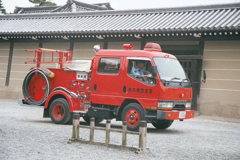 | Ojciec Wrzosa jest strazakiem i jezdzi wielkim wozem strazackim. Zrobilismy wiec zdjecie japonskiemu, bo jest duza roznica w skali :-) Especially for my dad - a genuine Japanese fire truck. They were finishing an inspection before we entered one of the palaces. |