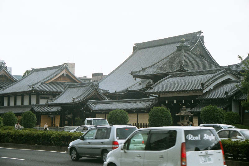 | A to wejscie do Nishi Hogan-ji (czyli, jesli dobrze pamietam zachodniej swiatyni Hogan) Another view of the temple from the street. |