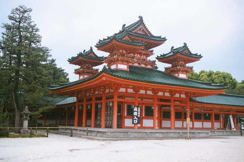 | Caly czas w swiatyni Heian, nawet kupilsmy sliczna ksiazke ze zdjeciami A building at the Heian Shrine. |