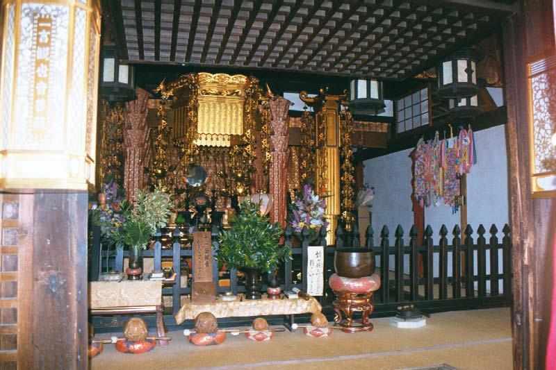 | Wnetrze kapliczki buddyjskiej A Buddhist shrine/altar at a temple. |