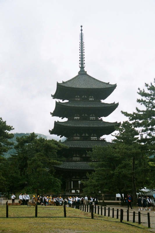 | Piecio warstwowa padoga w Nara. Nara byla stolica Japonii przed Kyoto (chyba do AD720) We took a side trip to Nara. Here is a 5-story pagoda within the Deer Park. |