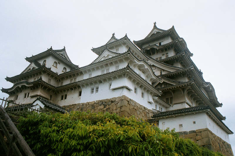 | I jeszcze raz moja ulubiona budowla - zamek w Himeji A view of the 6-story castle from below the ground floor. |