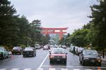 | Ta Tori jest wielka, no i jest jakis kilometr od wejscia This massive torii gate is made of steel and marks the entrance to the Heian Shrine. |