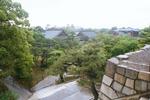 | Z tego samego donjonu na wewnetrzna fose. Co jest dziwne, Japonczycy nie uzywali zwodzonych mostow A backwards view from the donjon, with the moat of the castle visible. |