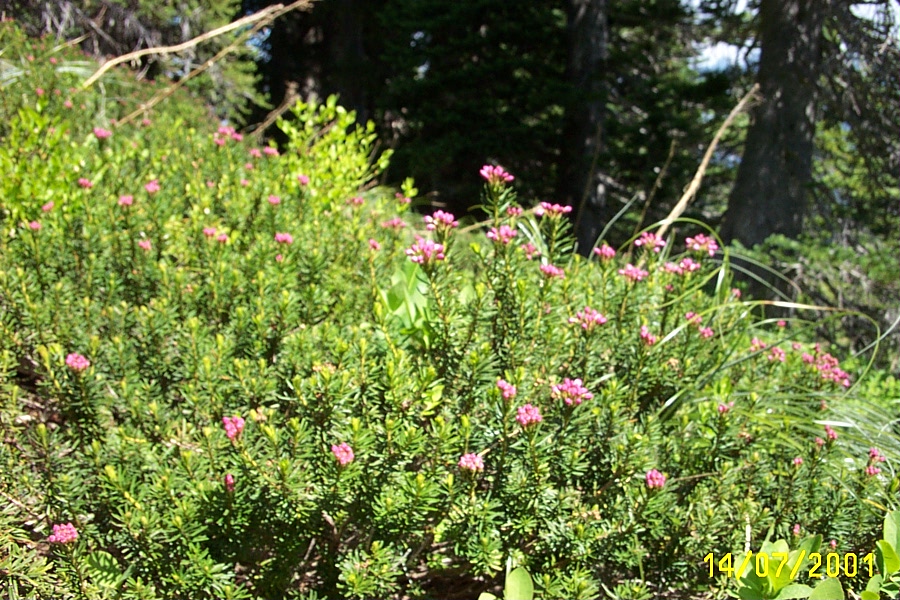| Cos ladnie kwitnelo, jakas dziwna karlowata iglasta roslina - moze to cos jak kosodrzewina? |