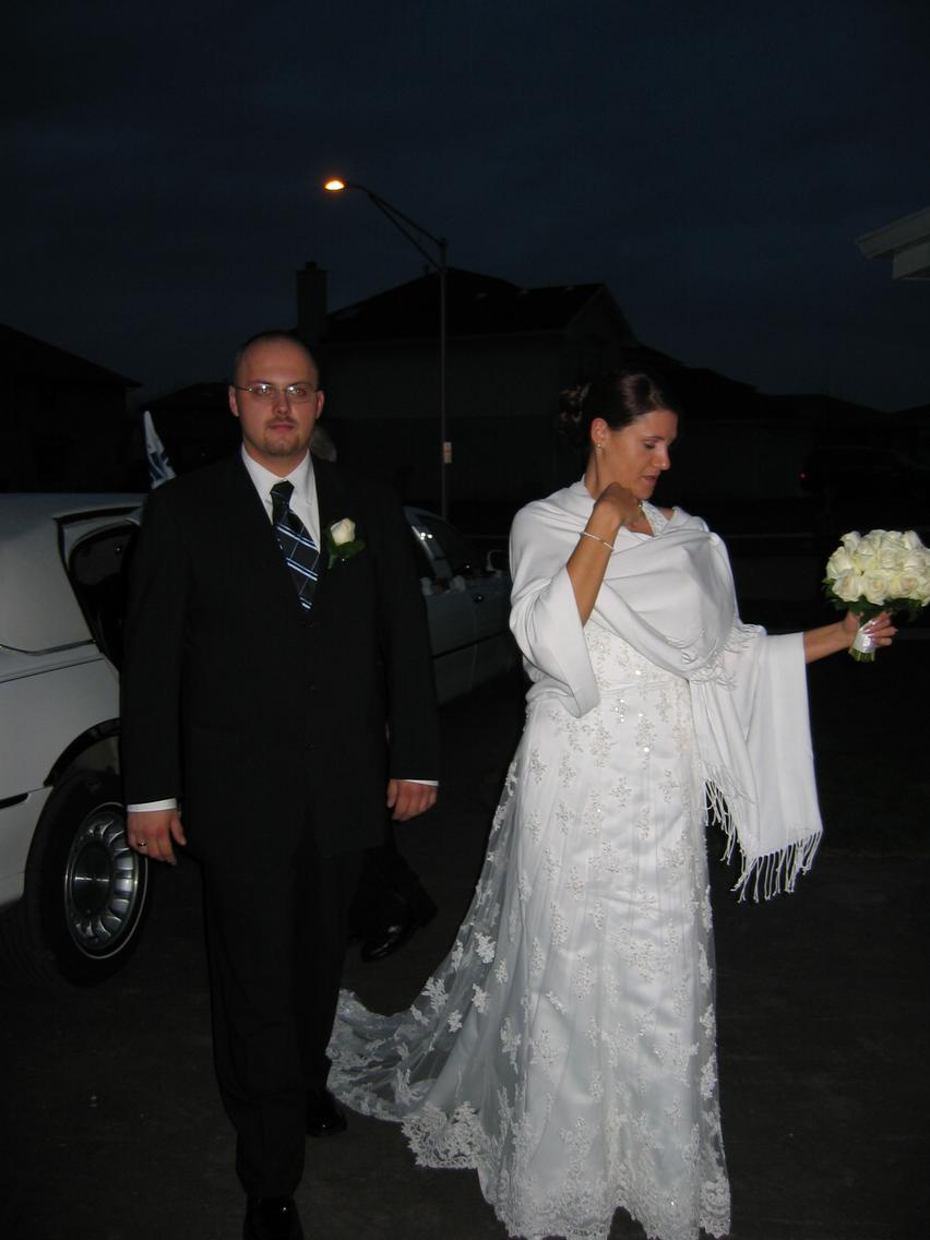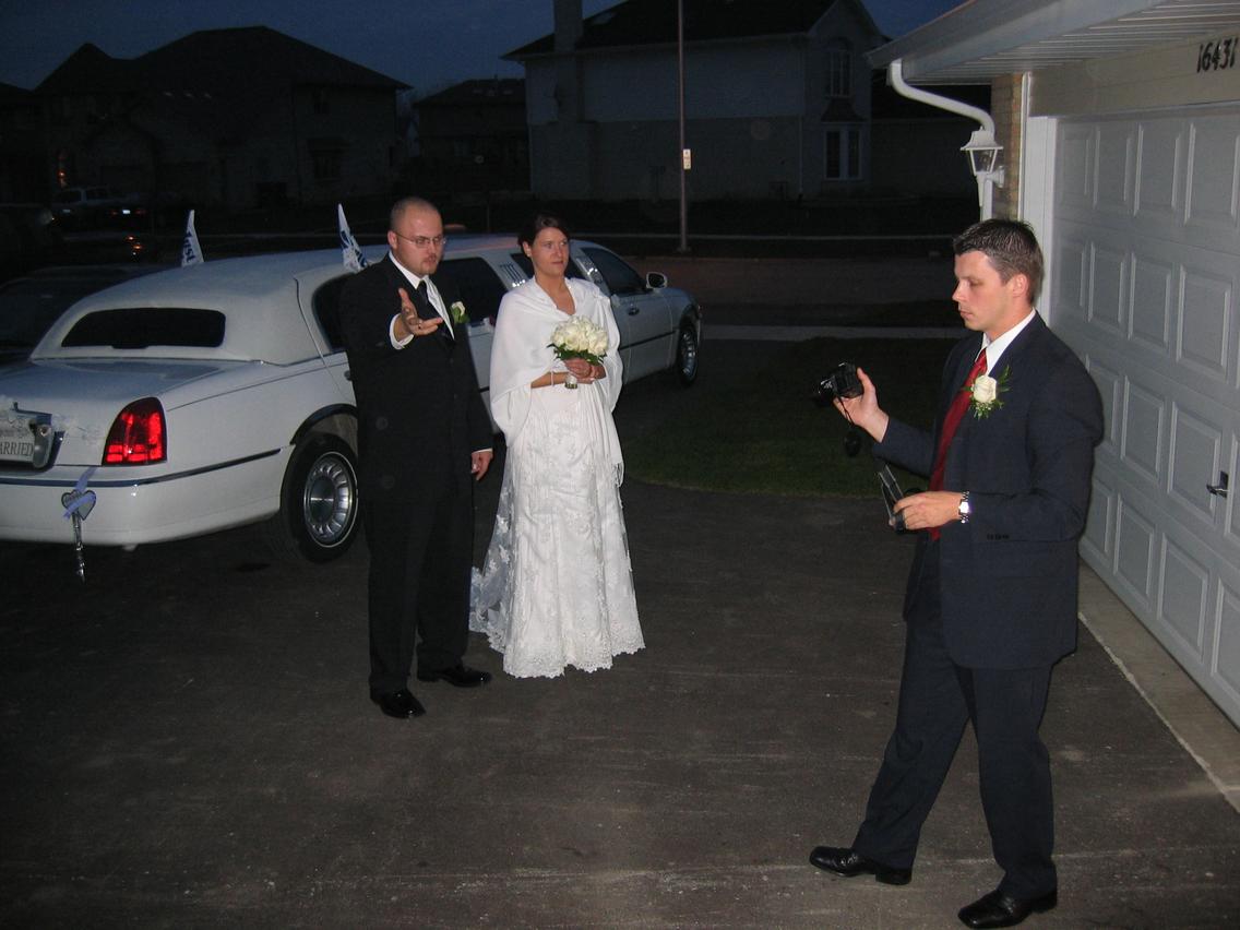 | A ten caly opis do poprzedniego zdjecia, to dlatego, ze my zabralismy rodzicow Pana Moldego do domu Agnieszki i Ryszarda, zeby przygotowac chleb, do powitania chlebem i sola. Teraz caly orszak powoli wynurza sie z limuzyny |