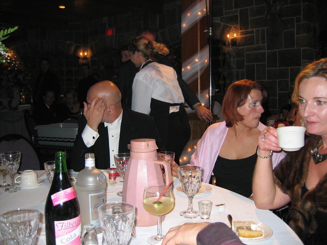 | Zdjec z wesela jest tylko kilka - byly lepsze rzeczy do roboty :-) Tutaj nastepna czesc rodziny zamieszkala w chicago - od prawej - Ewa - zona Andrzeja Murzanskiego (czyli moja ciocia), Magda (dawniej Murzanska) - tez ciocia i maz Magdy - moj nowo odnaleziony wujek Juliusz |