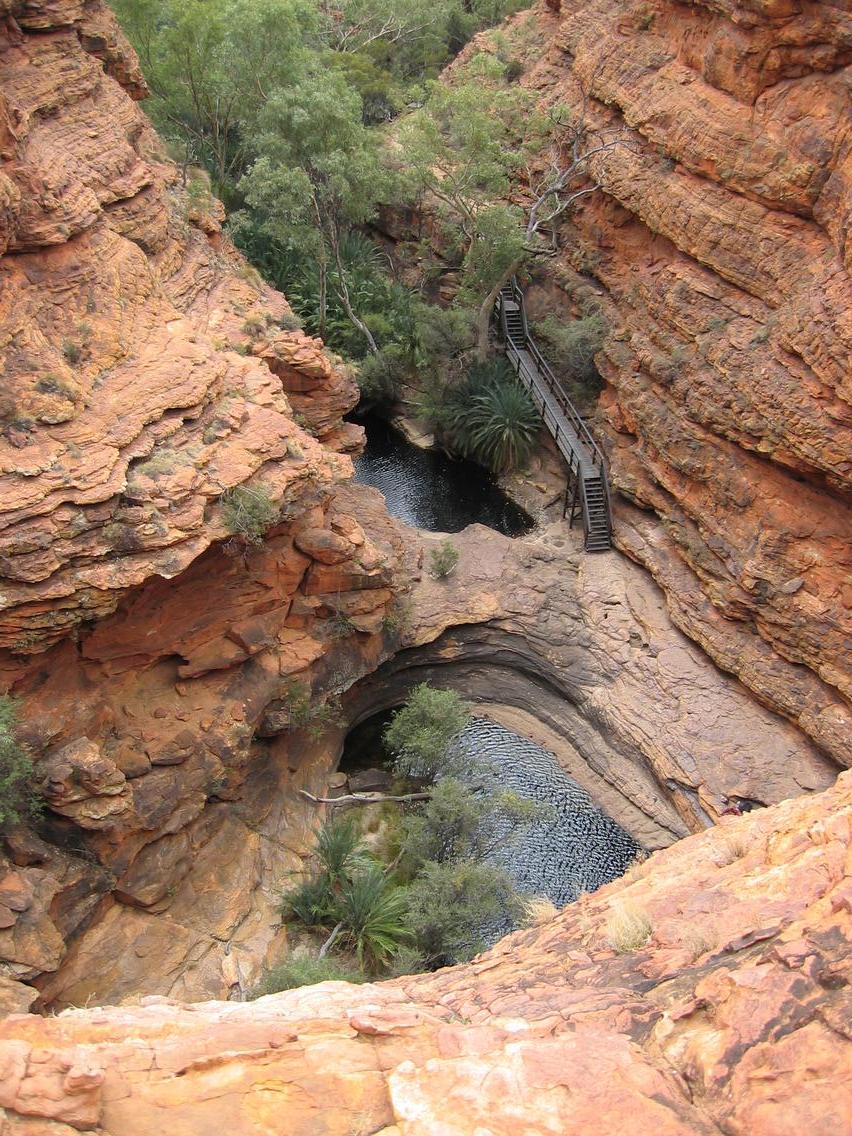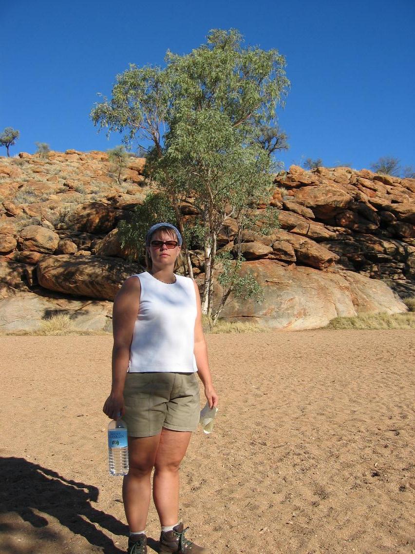 | From Sydney we flew out to Alice Springs. Alice as the locals call it is pretty much in the center of Australia. Believe it or not, I'm standing in a creek bed. If you dig three feet under me, you'd find a healthy river running underground. |