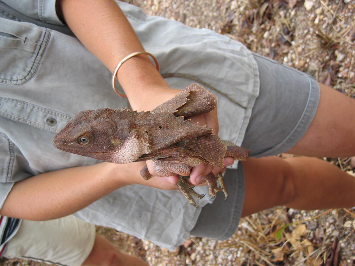 | Once we completed our tour out of Alice, we caught a plane to Darwin where we joined another safari tour. This tour was a 3-day tour through Litchfiled and Kakadu National parks. Here, not even an hour outside of Darwin, our tour guide brought the bus to a screeching halt and ran down a frilled lizard for us to see. |