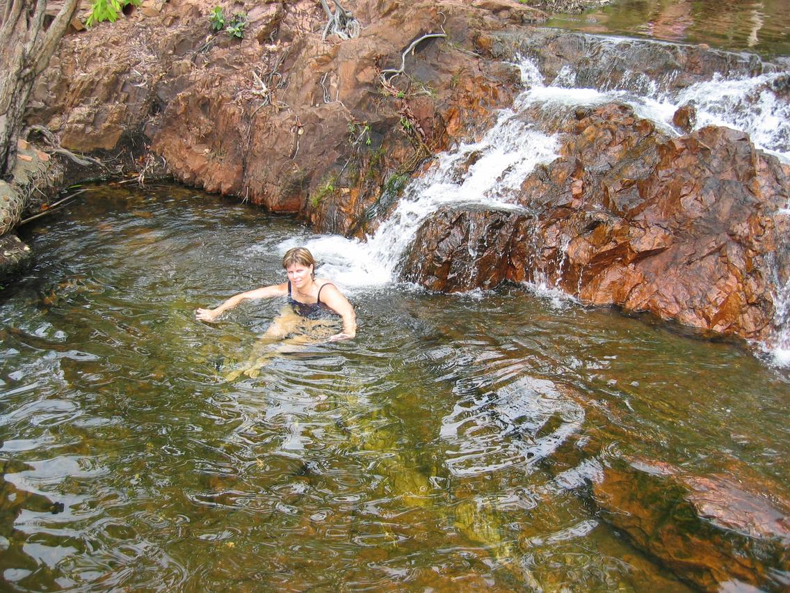 | This is the first place we stopped off to swim at. This is either Florence Falls or Wangi Falls - we forget! The water was too cold here for me, but Greg swam around for a while. |