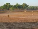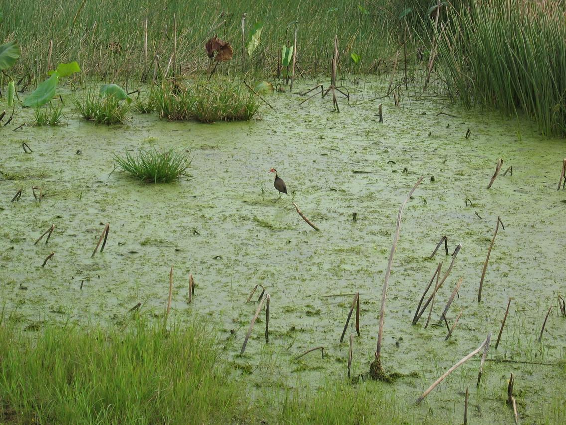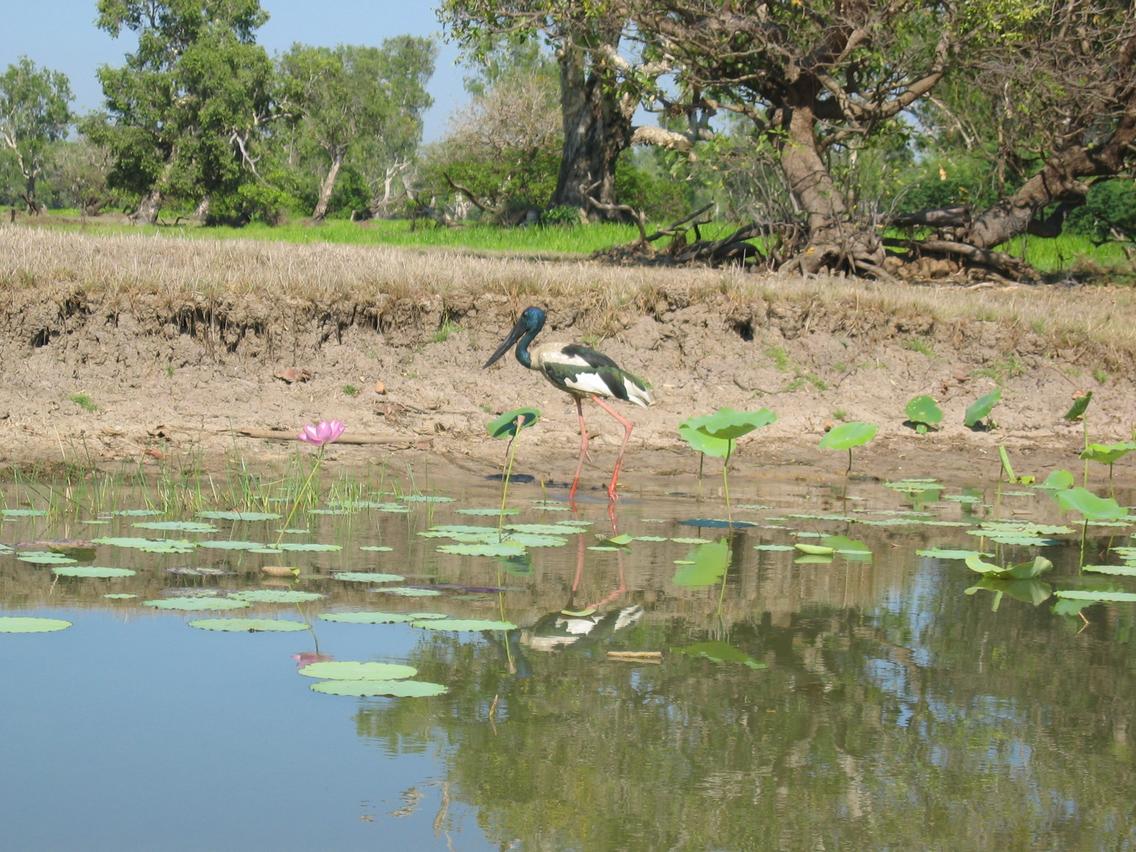 | At a nature stop at a large billabong, we saw this "Jesus" bird, named so because he appears to walk on water. Actually, his large feet are walking on the grasses growing just below the waters surface. |