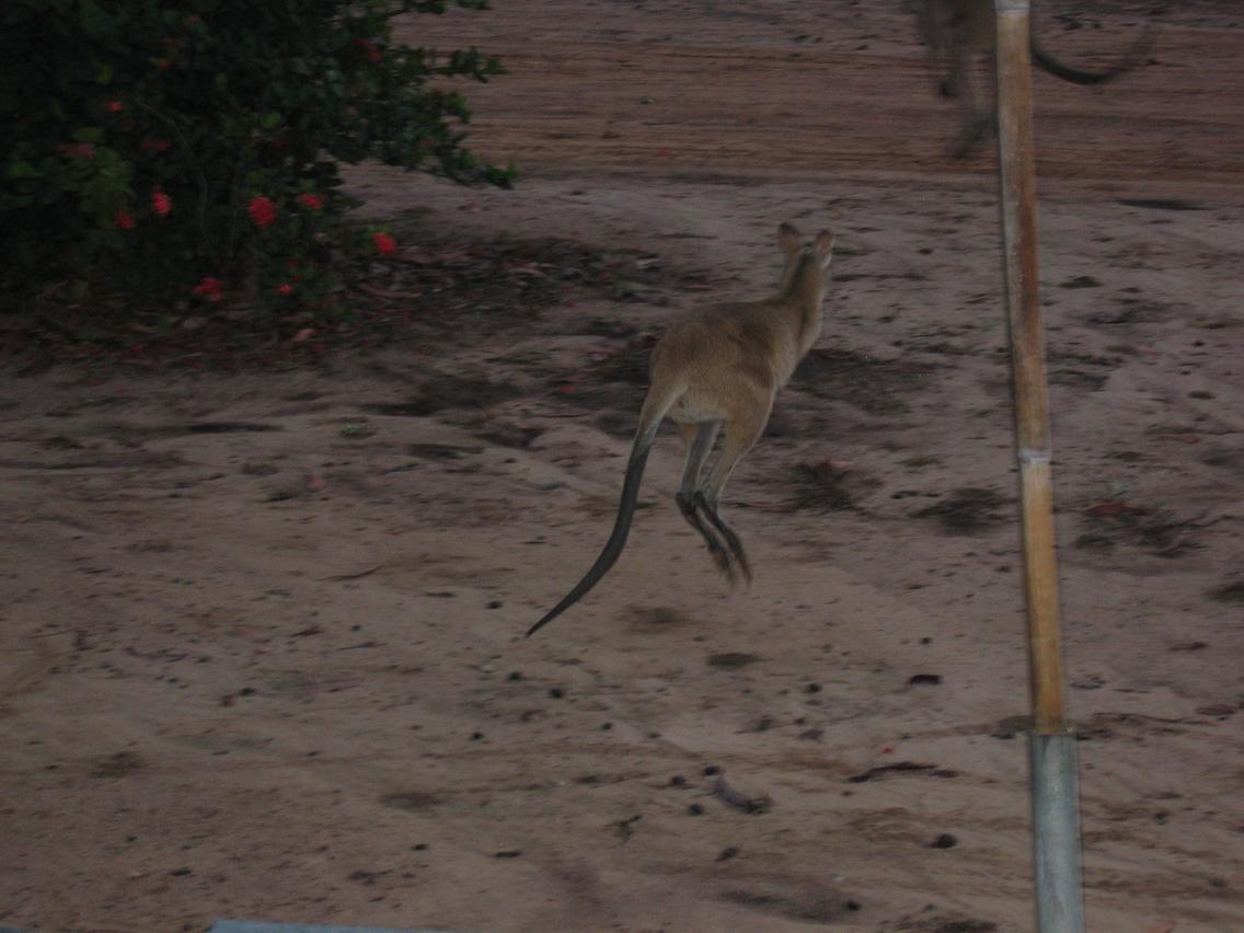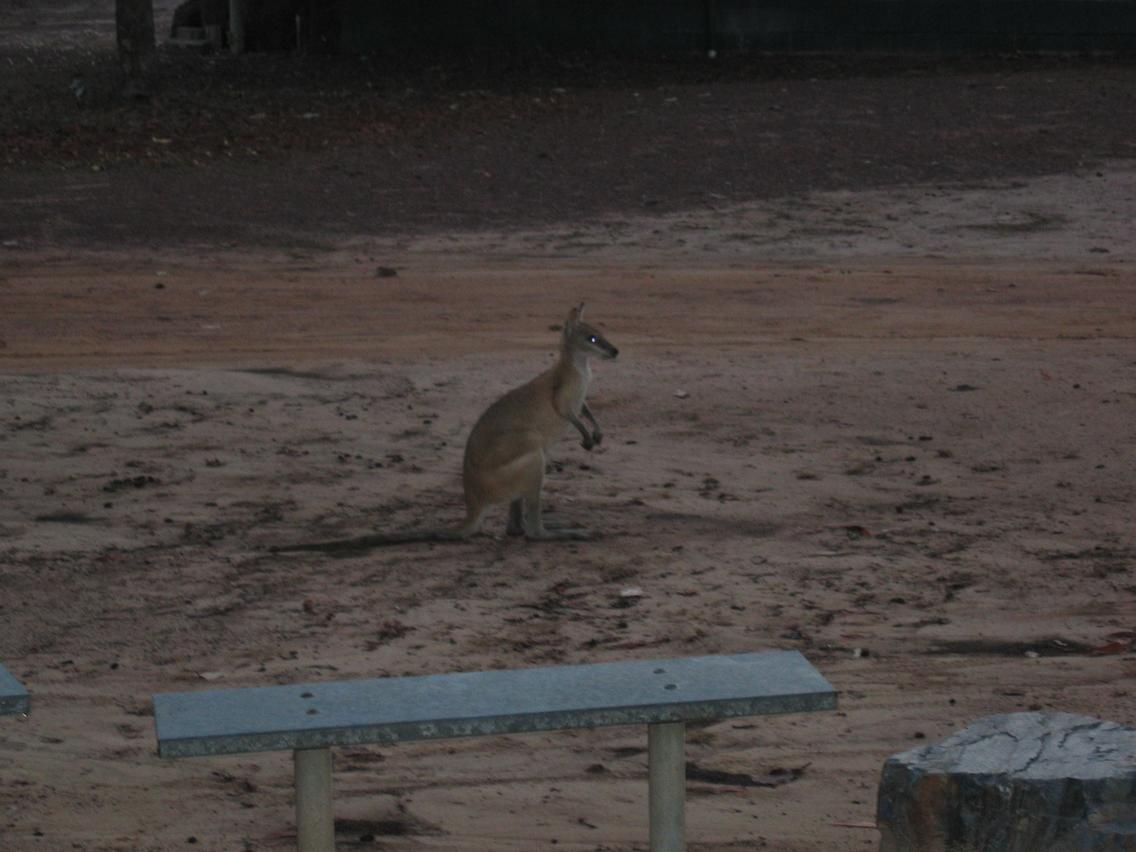 | Wallabies were as common as squirrels around our Point Stuart campsite. Here are several pictures of them at dawn the next morning. |