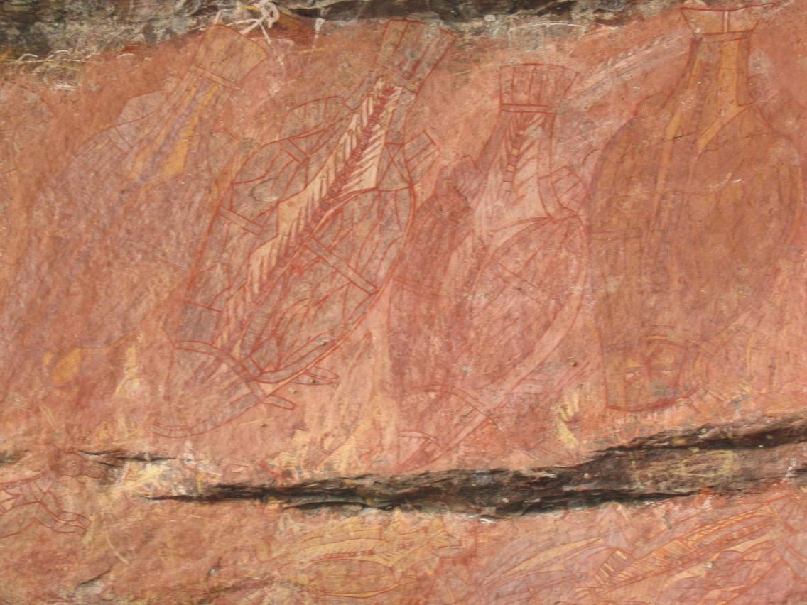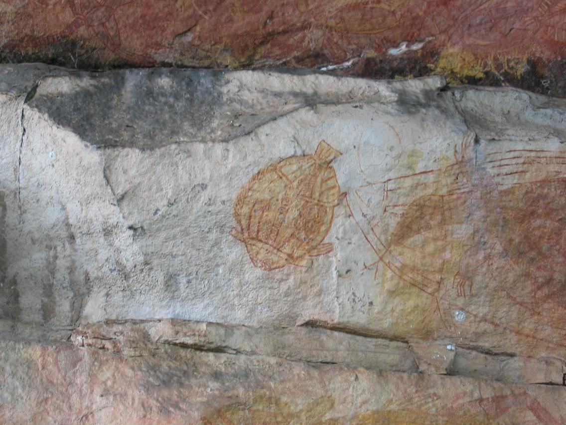 | In addition to being an excellent place to view wildlife, Kakadu is also one of the best places in Australia to view Aboriginal rock art. Kakadu is on the World Heritage List for both its natural and cultural importance. Here are some paintings from a place in Kakadu where they have proven over 20,000 years of continuous inhabitants. |
