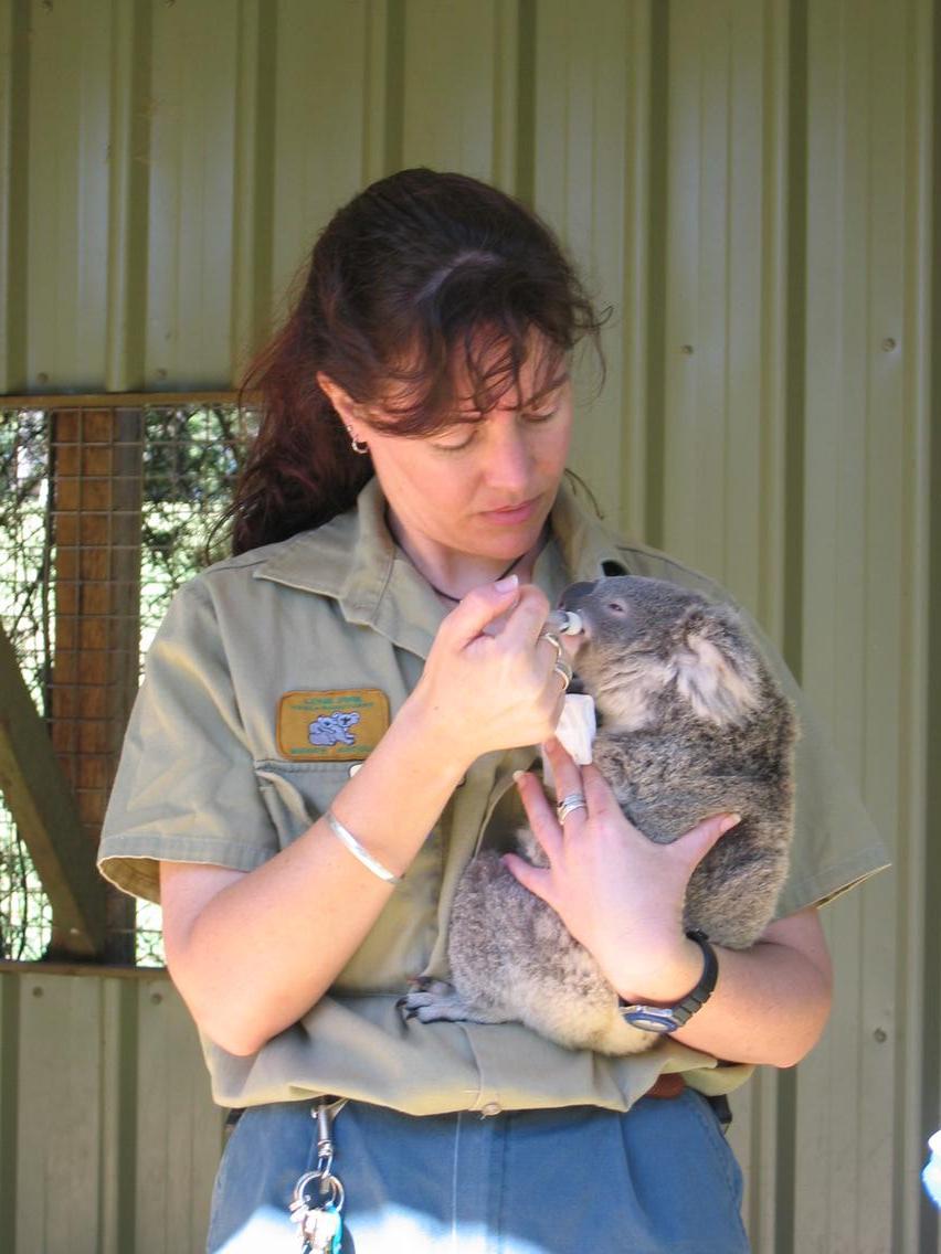 | Here a baby orphaned koala is getting a supplemental feeding from the park ranger. |