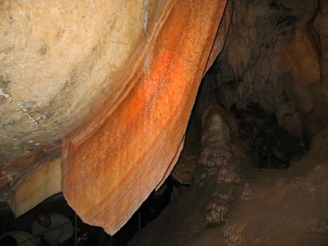 | Since the weather on top was so iffy, we decided to head underground to some Limestone caves. There were some pretty colors due to the high iron in the ground. |