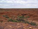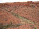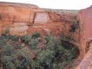 | From Alice, we joined a 2-day safari to the "Red Center". Our first stop was Kings Canyon. The depth of this photo is off, but the rocks in the background are eroded such to look like cities in the distance. |