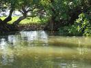 | Ah, but this is what we are really all looking for. Our first sighting of a crocodile along the banks. Look closely - do you see him? |