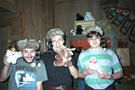 | Our three experienced hunters are smiling to a camera with their prey.