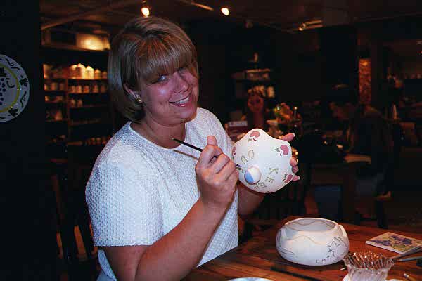| Here I am at the Painted Biscuit, a pottery painting place. It is a lot of fun,